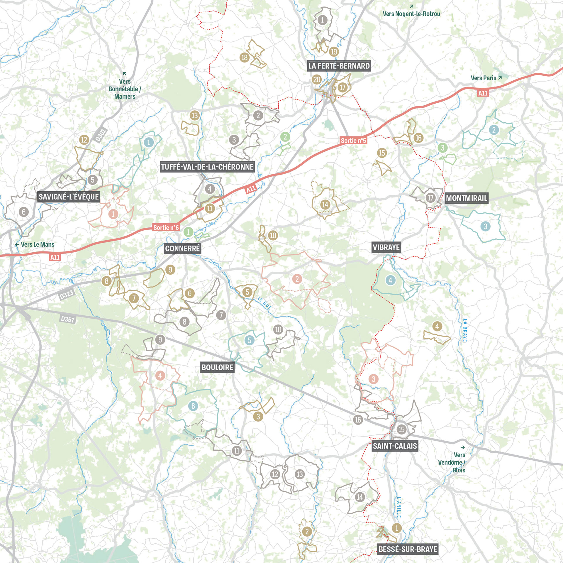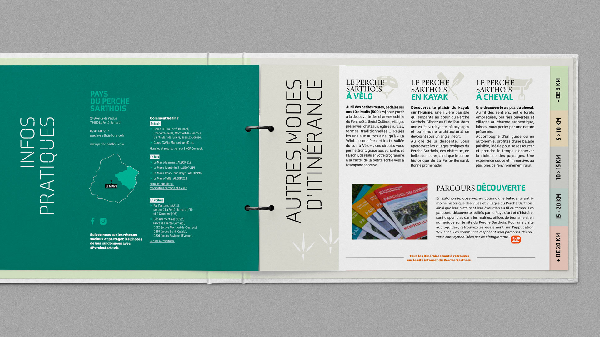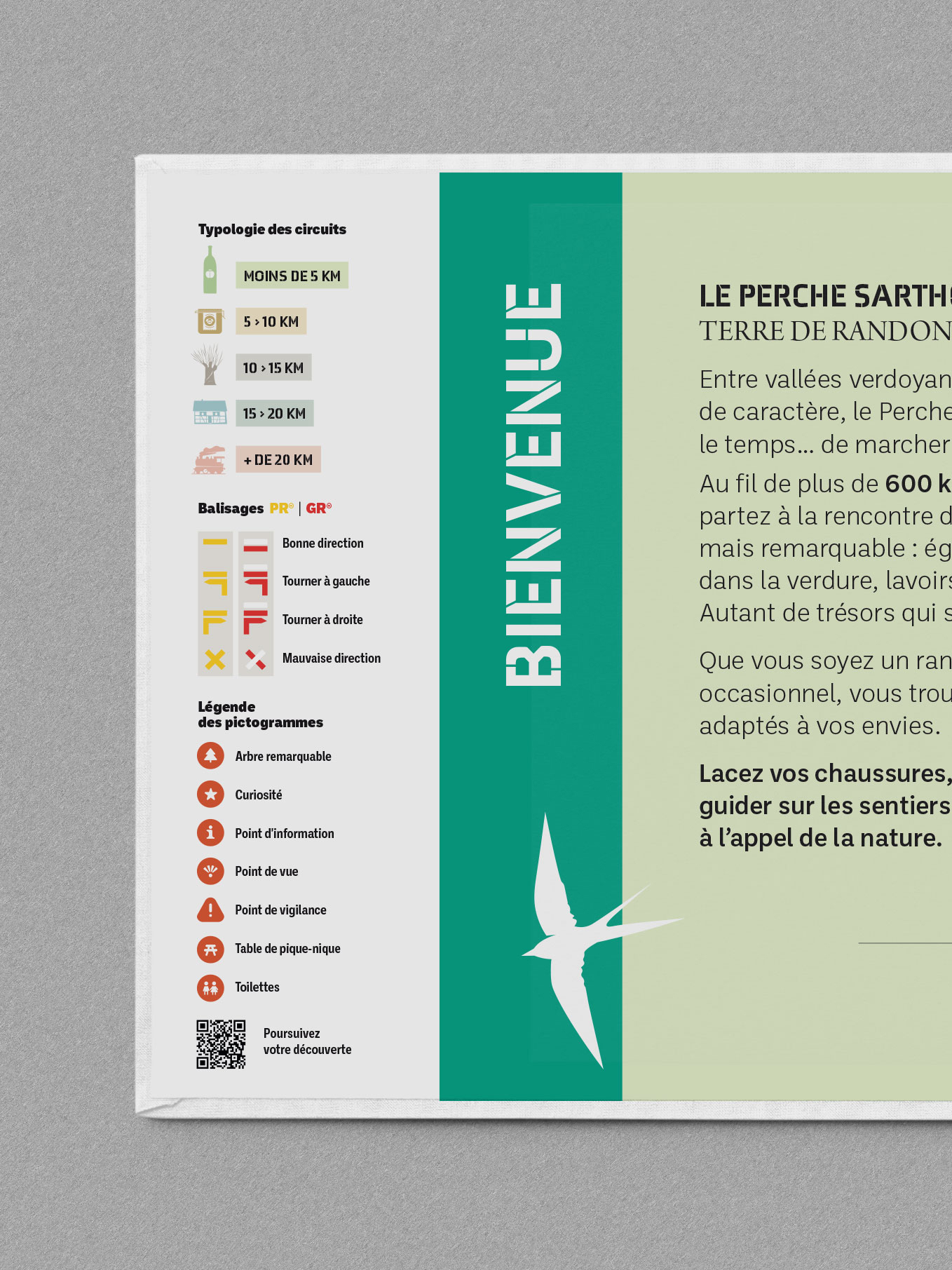Ce projet a été mené en étroite collaboration avec le Pays du Perche Sarthois, les communes, les associations et les référents randonnée : un travail collectif où se croisent design éditorial, pratique outdoor et transmission des lieux.