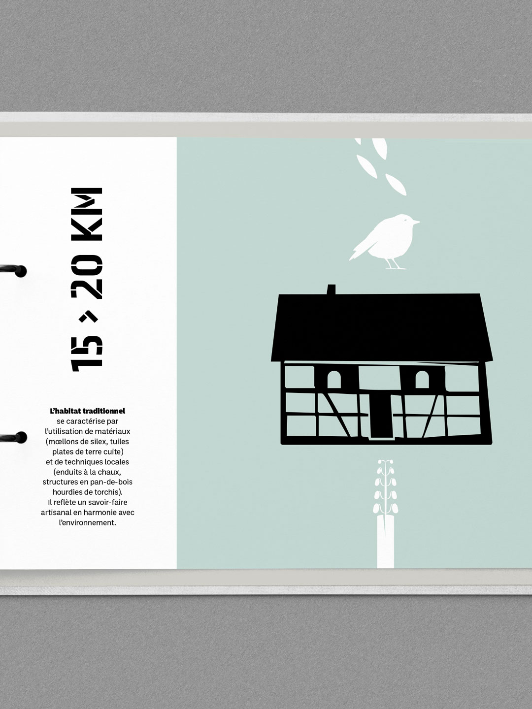 J’ai également développé un univers illustré qui accompagne les contenus éditoriaux : une manière de prolonger le regard porté sur le patrimoine, les paysages, la nature et l’atmosphère des sentiers, tout en affirmant l’identité graphique du territoire.
